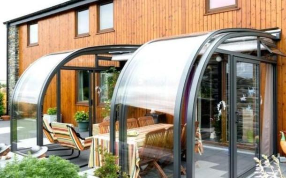 這種陽光房使用時可以鎖起來,冷的時候可以讓你曬曬太陽,不會覺得冷,也非常適合接待客人。有些家庭還會在里面建一個游泳池,不使用時會直接縮起來,這樣就可以用作裝飾,不會占用空間。