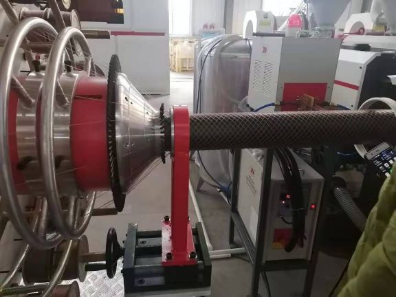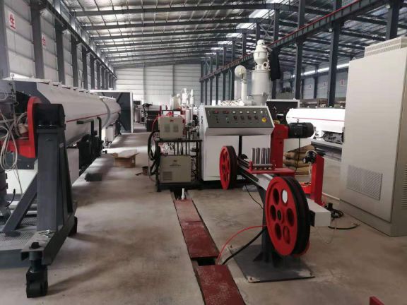 為了適應(yīng)中國管業(yè)市發(fā)展趨勢,提高產(chǎn)品競爭力,提升企業(yè)制造水平,鄧權(quán)管業(yè)斥巨資引進(jìn)2條先進(jìn)的鋼絲網(wǎng)骨架管生產(chǎn)線(GS/PE-G-250、GS/PE-G-630),該設(shè)備由國內(nèi)一流鋼塑復(fù)合管道設(shè)備生產(chǎn)企業(yè)四川金石東方新材料科技有限公司(GB/T 32439-2015《給水用鋼絲網(wǎng)增強(qiáng)聚乙烯復(fù)合管道》國家標(biāo)準(zhǔn)編制單位)研發(fā)制造,屬最新出口機(jī)型,擁有多項(xiàng)自主知識產(chǎn)權(quán),技術(shù)實(shí)力居國內(nèi)前列。鄧權(quán)鋼絲網(wǎng)骨架設(shè)備可生產(chǎn)Φ75-Φ630各種管材規(guī)格,穩(wěn)定生產(chǎn)速度可達(dá)80米/h,生產(chǎn)能力和技術(shù)水平在同行業(yè)領(lǐng)先,在本土企業(yè)可謂首屈一指。