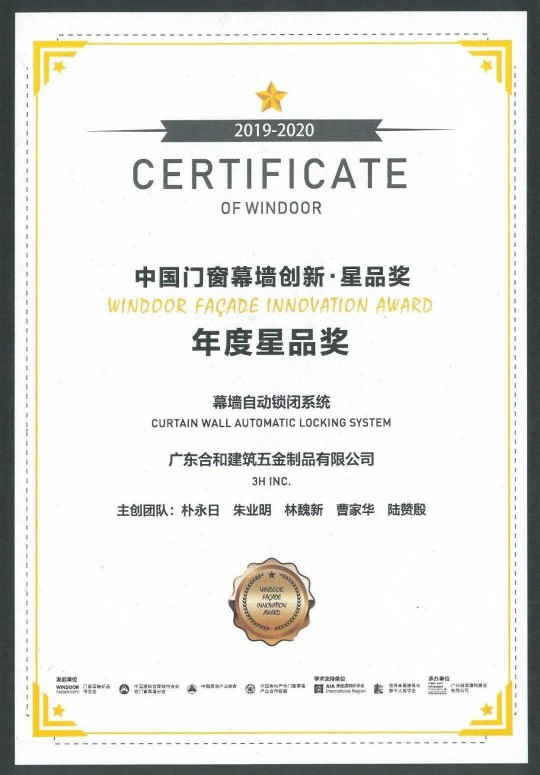 該系統(tǒng)有效解決幕墻上懸窗在無人看管的狀態(tài)下,遭遇強風(fēng)沖擊導(dǎo)致窗扇脫落的安全隱患問題,人性化的設(shè)計為人身安全以及公共安全保駕護航。此次獲獎是繼榮獲廣東省高新技術(shù)產(chǎn)品后的又一重要榮譽,證明合和在建筑門窗創(chuàng)新領(lǐng)域的持續(xù)投入,用人性化的解決方案推動行業(yè)健康持續(xù)發(fā)展。