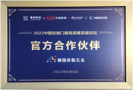 會后,德國庫勒五金被授予了《2022中國定制門窗高質量發展論壇》官方合作伙伴牌匾,以嘉其對本次論壇活動的大力支持。
