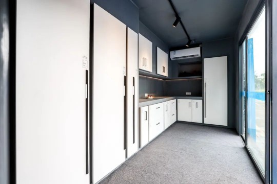 悍高首創聯合集裝箱設計,打造創意滿滿的集裝箱移動展廳,以打破傳統展廳的刻板認知,融匯了時尚快閃風格和悍高VISI元素融合的設計布局,從集裝箱的外觀到展廳布局全方位給您一次升華的感受,呈現出了一個會說話、會移動的高顏值展廳,簡約又兼備品味。整個展廳空間規劃分為廚房功能五金區、衣柜功能五金區,為您呈現一個不一樣的選品空間。