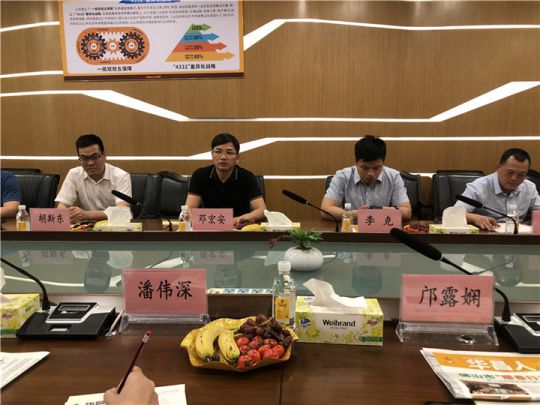 鄧常委一行在潘偉深董事長的陪同下進行座談,潘董事長向一直關心、支持、幫助華昌發展的鎮委政府、各職能部門致以衷心的感謝和熱烈的歡迎!并向鄧常委匯報了華昌鋁業近年來的生產經營情況。潘董事長表示:“華昌新材料”項目是華昌鋁業繼廣東華昌、江蘇華昌兩大生產基地后,又一里程碑,華昌對該項目高度重視。