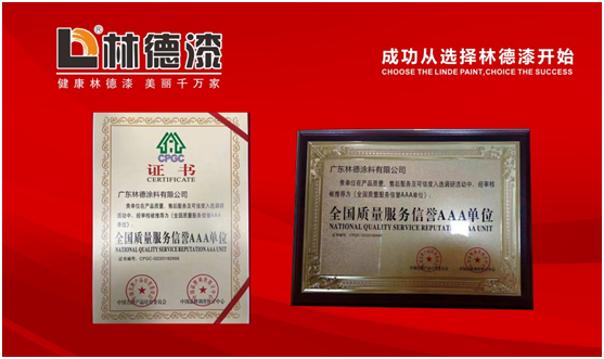 近日,林德漆憑借在綠色涂料行業(yè)領(lǐng)域的不斷探索和創(chuàng)新,榮獲由中國(guó)名牌產(chǎn)品培育委員會(huì)和中國(guó)品牌調(diào)查統(tǒng)計(jì)中心聯(lián)合頒發(fā)的“全國(guó)質(zhì)量服務(wù)信譽(yù)AAA單位”榮譽(yù)稱(chēng)號(hào)。