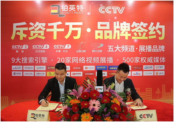 一直以來,鉑英特涂料堅持“為千城萬樓打造精品”的初心,把涂料事業(yè)做實、做精、做透,得到了全國廣大客戶的好評。此次鉑英特涂料與各大電視媒體進行品牌推廣協(xié)議的簽訂,再次提升了鉑英特品牌的推廣高度,這也是鉑英特涂料2019年品牌打造的重要計劃之一。