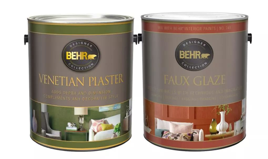 據報道,這兩種藝術漆產品一直是美國市場消費者最喜愛的產品。Behr百色熊威尼斯仿石涂料可以用油灰刀涂抹,而Behr百色熊格麗斯釉感涂料可以用小掃帚、海綿、塑料板或任何你能想象的紋理制作工具涂抹,只需幾個簡單的步驟就能創造出你想要的墻壁藝術效果。