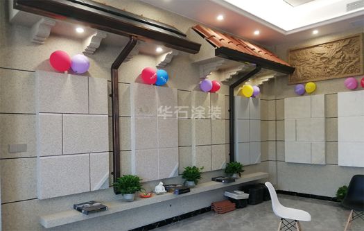 華石涂裝婺城旗艦店整店的裝修沿用了旗艦店面的設(shè)計(jì)風(fēng)格,全店皆采用仿石涂裝,搭配別墅常用的裝飾構(gòu)件,店內(nèi)精美的藝術(shù)畫和別致的燈飾,更讓高端大氣的店面散發(fā)著強(qiáng)烈的藝術(shù)氣息。