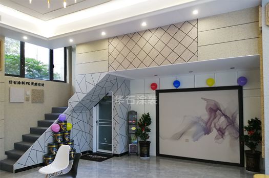 婺城旗艦店店內(nèi)分為二層,一層為產(chǎn)品體驗(yàn)區(qū),二層為會(huì)客洽談區(qū),在產(chǎn)品體驗(yàn)區(qū)綜合了仿石涂裝的不同材料、工藝、風(fēng)格做出來的仿石效果,仿石涂裝施工工藝、馬賽克/瓷磚翻新施工工藝、外墻涂裝解決方案也一應(yīng)俱全,值得每一位來賓細(xì)細(xì)品鑒。