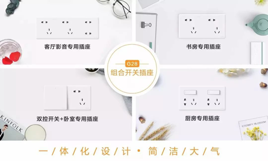 直接選擇公牛G28組合開關插座,四個系列根據客廳、臥室、書房、廚房的普遍用電需要,在產品設計的時候預先考慮好了各場景開關插座數量的搭配及布局,超級人性化的產品,美觀又實用,選購時省心省力,強烈推薦給大家~