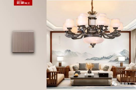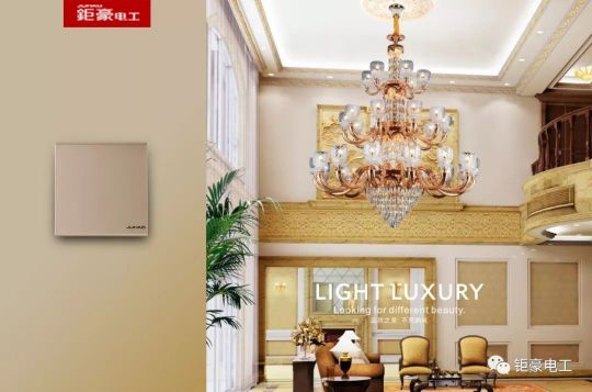 開關搭配:輕奢風格的燈飾,搭配香檳金輕奢元素點綴的開關,與帶輕奢風的燈飾相得益彰,馬上把家中的氛圍”點亮“了起來。