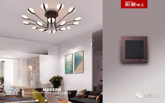 開關搭配:藝術燈適合搭配同樣具有現代藝術性的鋁板拉絲面栗銅棕開關,線條流暢簡單,色彩對比度明顯,這樣能增加整體裝修風格的藝術感,也能為整個空間達到錦上添花的效果,能一下抓住人們的眼球。
