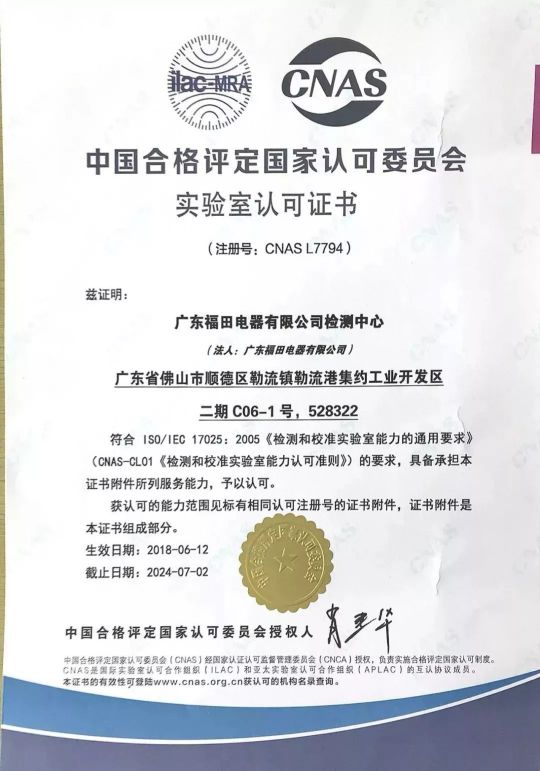 在2015年,福田檢測(cè)中心獲得 中國(guó)合格評(píng)定國(guó)家認(rèn)可委員會(huì)( CNAS)的認(rèn)證 ,并被授予實(shí)驗(yàn)室認(rèn)可證書。