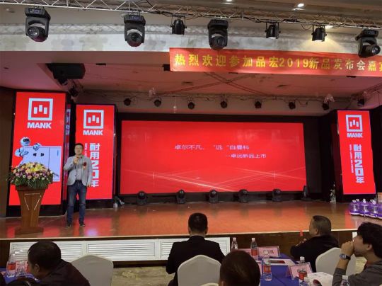 曼科開關市場總監何斌上臺為現場客戶們講解曼科新品卓遠系列的產品特點,卓遠系列是經過曼科開關的創意設計與匠心智造,在開關插座面板融入格子柜家居設計元素,進而打造出一款集時尚與耐用于一身的產品,讓生活的藝術得以在小小的開關插座中盡情釋放。