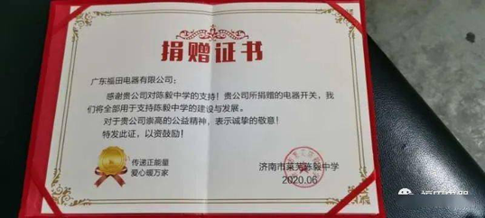 2020年6月,福田山東辦事處及經銷商山東彬鴻五金電器有限公司確定對山東萊蕪陳毅中學給予捐贈。
