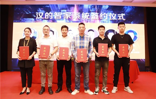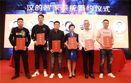 本次晚宴中,現場隆重舉行了漢的電氣智家系統浙江區域的簽約儀式,漢的電氣總經理杜漢紅、漢的電氣浙江分公司總經理杜秋分別與壹家燈飾總經理楊志剛、鼎鑫燈飾總經理應海國、杭州貴偉電器工程有限公司總經理文健偉、永康市云頂智能燈光總經理張國君、天臺雷士照明總經理陳義慶、海寧市許村鎮燈飾總經理費新芬、恩特照明總經理陳永斌、新星燈飾總經理王琛、長明門業總經理黃東升、光影智能設計總經理周若南、浙江光空間總經理李秀英簽訂東陽市、義烏市、余杭區、永康市、天臺縣、海寧市、臺州市、浦江縣、麗水市等簽訂領域代理權。