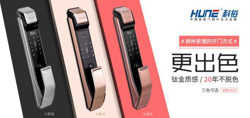 2017年科裕又一大創舉,不但完美的解決了智能鎖表面一般采用電鍍或噴漆的工藝,耐磨時間不長的問題并解決了外觀表面光澤不夠上檔次的科技時尚產品的問題,而推出鈦合金工藝。雖成本高但耐磨強,二十年不脫色、手感好、質感光澤好,材料輕型而堅韌,解決了普遍智能鎖體積大又重對門本身的轉軸頁負荷問題。近日推出的中國標準全電動智能鎖,是嚴格按照中國防盜標準而設計的,不是簡單的仿韓式的電動鎖,這又是一次重新定義中國標準全電動智能鎖。