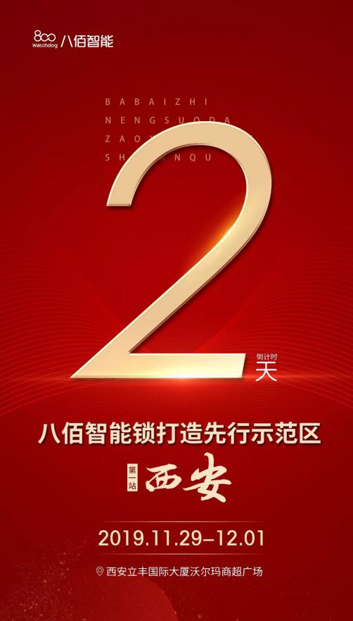 2019年11月29日,八佰智能鎖先行示范區第一個地點——陜西西安站將全面啟動,到時將會有各類活動舉辦,有興趣的朋友何不到時親臨現場去體驗一下。陜西,身為紅色革命文化起源地的所在省,走在革命的最前沿,進而發展變為了革命圣地,而這次西安,身為先行示范區的起源地,讓我們期望它形成燎原之勢,將八佰智能鎖席卷全國。
