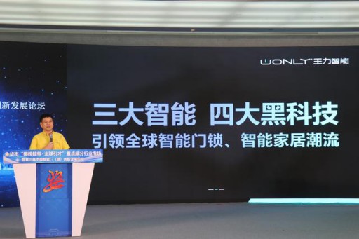 浙江省政府、金華市、永康市有關領導以及行業(yè)協(xié)會、領軍人才、重點企業(yè)、專業(yè)機構專家、企業(yè)家參會。王力董事長王躍斌應邀出席會議,并發(fā)表《三大智能、四大黑科技,引領全球智能門鎖、智能家居潮流》主題演講。