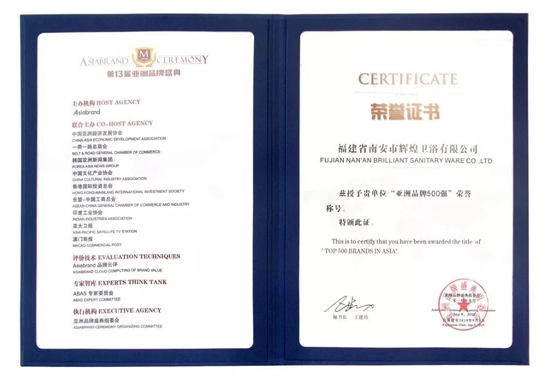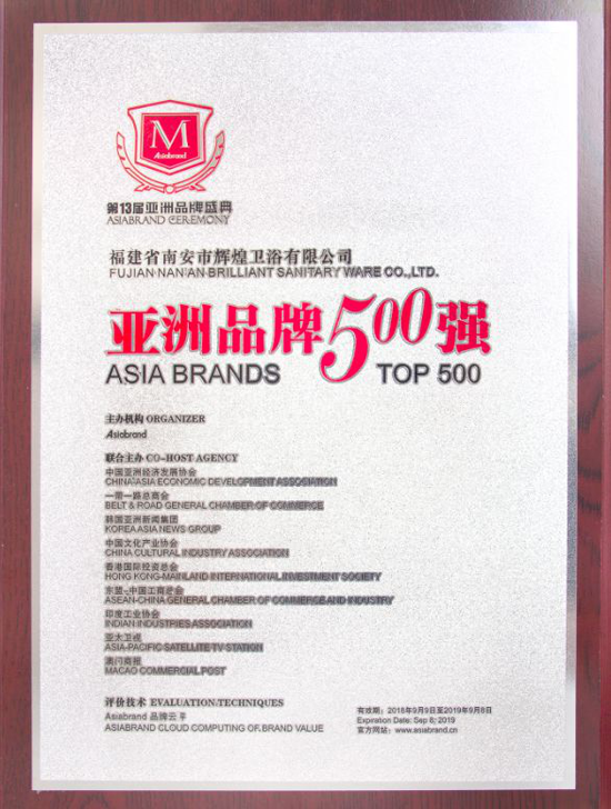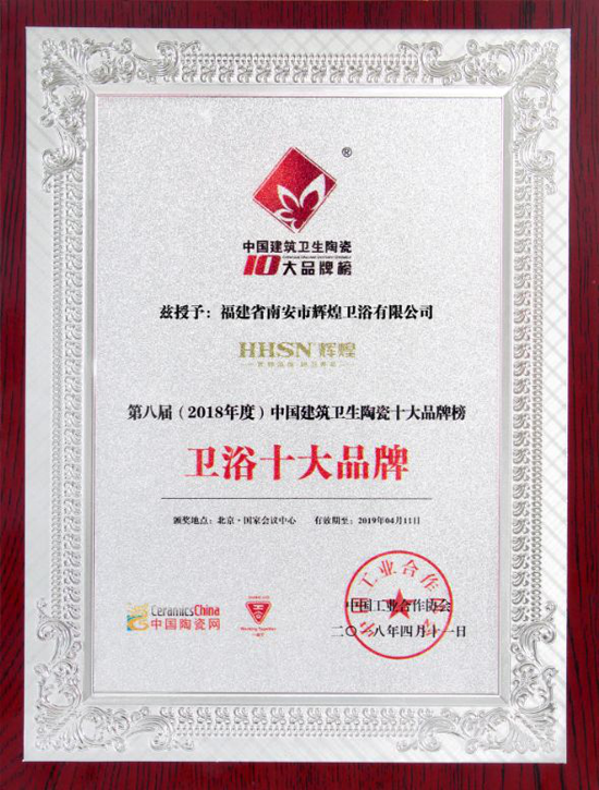 “金秋送爽,丹桂飄香”,2018年,輝煌集團又是碩果累累的一年,品牌榮獲第八屆(2018年度)中國建筑衛生陶瓷十大品牌榜“衛浴十大品牌”,第八次蟬聯“亞洲品牌500強”、“沸騰杯”優秀獎、中國建材“精英杯”產品質量金獎等獎項。