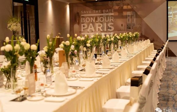 本次活動邀請了THG Paris在當地的合作伙伴及大咖設計師,宴會廳以THG標志性的法式風尚風格布置,簡約設計中處處可見優雅精致的細節。