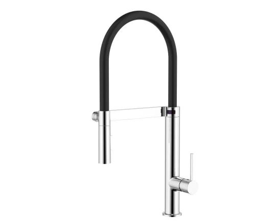 電子自動感應水,感應距離在40毫米以內,實現科技與人心,真正釋放雙手。一鍵開關出水方式,可隨時方便切換水,使用方便。拉動式設計,卡槽返回,可伸縮。有泡泡水和淋浴水,可以滿足廚房用水的需求。