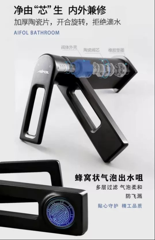 埃飛靈全系列龍頭產品優選精銅材質,一體重鑄成型,閥芯采用進口精密陶瓷閥芯,表面經過10級電鍍工藝,保證防斷裂不滴漏,抗腐蝕性更強,美觀耐用,使用更舒適,光亮更持久,正常使用高達50年以上都不會損壞。