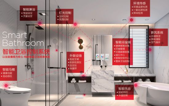 當然,智能的浴室必然少不了聰明的智能馬桶。當它在感受到腳步靠近時,智能馬桶會自動翻蓋;當馬桶感應到有人要落座時,會喚醒浴霸,自動開啟排風,凈化如廁空氣,殺菌除臭等等。