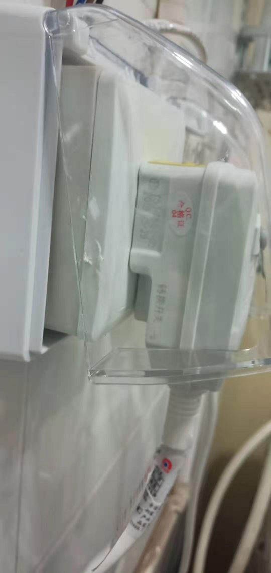 自個購買的混水閥加一個加長的淋浴噴頭支架,如此就可免于在墻面打孔安裝淋浴支架了。另外,以便安全起見,我還為插座增加了防水罩。