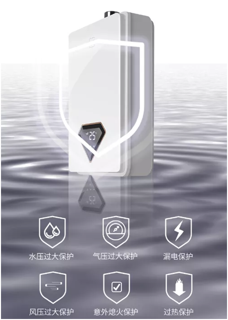 對(duì)于用電、用氣的燃?xì)鉄崴鳎逶“踩U鲜腔A(chǔ)。對(duì)此,考慮到用戶在使用時(shí)的人身安全,燃?xì)鉄崴鱄61搭載了多重安全防護(hù)系統(tǒng),如水壓、氣壓過(guò)大保護(hù)、熄火保護(hù)、漏電保護(hù)、防干燒保護(hù)、防凍保護(hù)等,實(shí)時(shí)保障用戶洗浴安全。