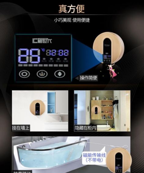真方便——提到高科技水,人們目前較為熟知的當屬磁化水,“磁派磁能熱水器”利用磁場感應加熱水的同時對水進行磁化,軟化,降低水的硬度,提高水的活性,是真正具有磁化水功能的熱水器。人們長期飲用磁化水可改善人體的血液循環,減緩細胞老化,延年益壽。使用磁化水洗浴,可以美容,美膚,美發。并具有抗菌消炎的作用,對傷口以及傷疤的愈合能起到一種很神奇的效果!