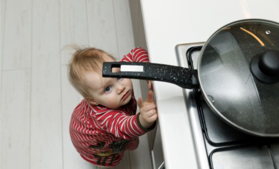 寶寶們帶著好奇心偷偷溜進廚房,各種電器按鍵都不放過,更能膽大地開爐點火,如有不慎就會漏電觸電,燙傷,甚至引發火災。