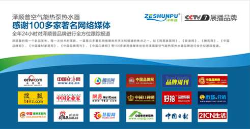 在央視這個覆蓋率高、公認高端的傳播資源上的巨資投放不僅僅是普澤企業實力強勁最好的證明,更顯示出了普澤打造空氣能行業強勢品牌的堅定信心。正如相關負責人所說:在央視7頻道的鼓勵與支持下,澤順普這一品牌在老百姓的心中的印象逐步加深。此次攜手CCTV,登陸央視7,澤順普空氣能熱水器品牌將又一次獲得質的提升。