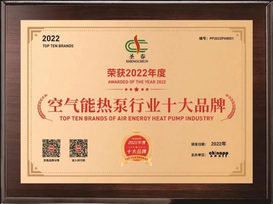 圣春新能源憑借持續不斷的品牌創新和專業高效的服務質量,產品深受業內和廣大客戶的認可和信賴,是業內首批獲得五星品牌和五星售后“雙五星”認證企業之一。此外,公司還獲得了全國質量信用優秀企業、國家工信部“能效之星”、科技小巨人、‘節能杯’第六屆熱泵系統應用設計大賽熱泵集中供暖最佳應用獎、山西清潔取暖突出貢獻單位等榮譽稱號。