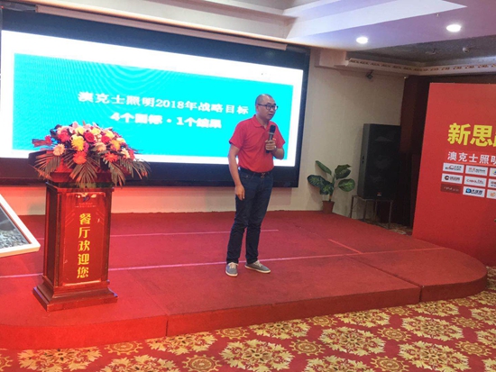 在掌聲與歡呼聲的伴奏下,中山市澳克士照明電器有限公司總經理潘振華先生邁著堅定的步伐走上臺前,并向在座的各位來賓深深地鞠上一躬,潘總對大家的到來表示熱烈的歡迎與誠摯的感謝!潘總先是對武漢這個城市表達了自己的鐘愛之情,更表示澳克士團隊將堅定學習武漢“敢為人先,追求卓越”的城市精神,在日常的生產工作中完善自我,不斷超越自我!