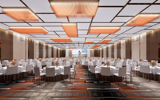 一層宴會廳以亮橙色貫穿于整個設(shè)計,在雅致的大堂中跳脫出活力與時尚,為賓客帶來一種積極美好的生活向往。