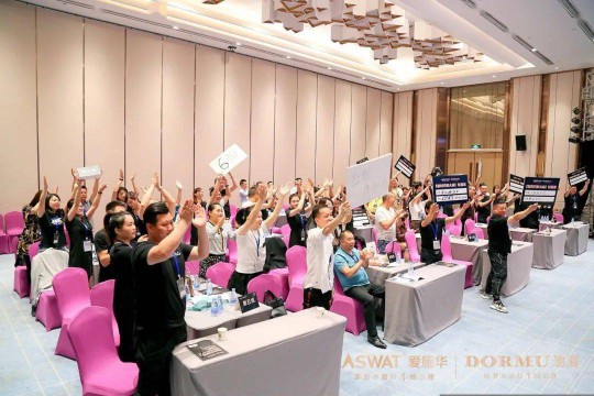 本次課程分為行業趨勢理解、營銷篇、雙線營銷模式、門店成交四個部分,從多個方面、多個角度為經銷商們拓寬營銷思路,提高門店成交率。愛施華團隊和經銷商們被分成了十余個小組,進行積分競爭,優勝的隊伍將獲得豐厚的獎勵。競爭和獎勵機制調動了大家的學習積極性,課堂效果十分顯著。經過一天半的培訓,學員們紛紛感嘆收獲盆滿缽滿,獲益良多。