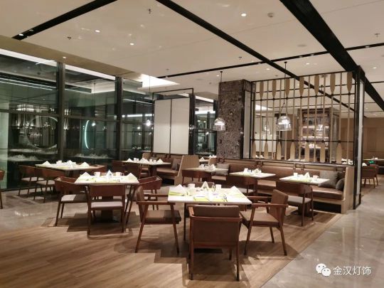 無論在自助區還是就餐區,JINHAN燈飾均采用極其簡約的餐吊燈飾造型,達到造型藝術和燈光藝術融為一體的效果。