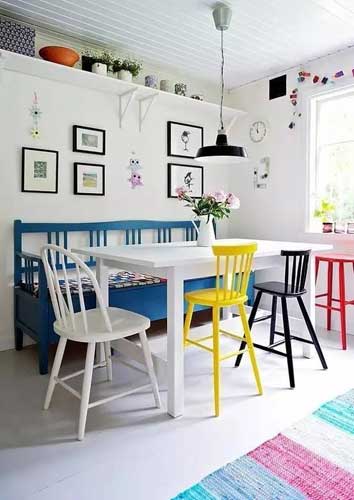 4. 如果不喜歡復雜,也不喜歡新奇,中規中矩的就像這樣,底色統一鋪開,用相近的色調作點綴,你看,這家連掛畫底色都是統一的白哦~