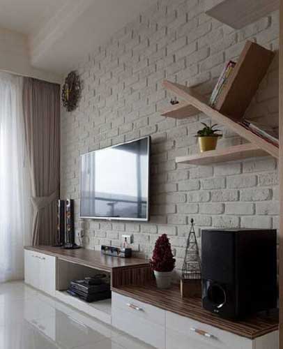 7. 原木風格帶給人一種安靜雅致的氛圍,磚墻看似簡陋,卻耐得住反復看,置物架在磚墻襯托下很搶眼。