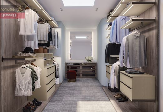 意大利Homusee公司直營Giessegi 現代板式家具Giessegi的極簡風衣帽間,設計如紛擾塵世的一股清流,可以讓你回歸到最簡單的自己。開放式衣帽間不僅極大的解決了衣服多沒地方放的問題,收納空間也得到了極大的改善,再也不用衣服扔的滿地都是了,意大利工藝特有的“一柜到頂”,2.94米板材絕對不是吹的,國內目前制造板材的工藝絕對達不到這個尺寸。如此一舉兩得的衣柜, 不僅實用更加美觀。
