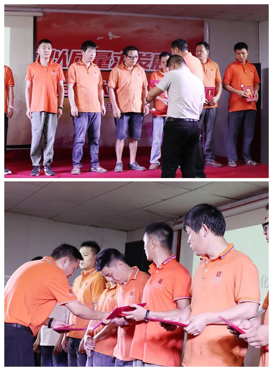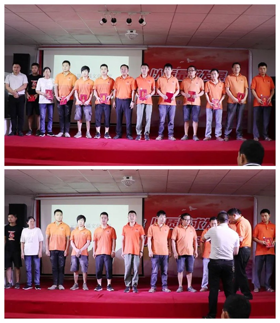 總經理馬志先生為獲獎家人頒獎,品質部經理喻雄做活動總結,優秀匠人代表張遠培、鐘宇、王華保、黃燕峰、劉祥福、羅青國心得分享。