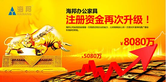 眾所周知,一家有實(shí)力的企業(yè),外在注冊資金的多少,內(nèi)在產(chǎn)品的質(zhì)量,決定企業(yè)未來的發(fā)展方面。作為中國著名辦公家具品牌海邦原來的注冊資金就有5080萬元,在行業(yè)中已屬于佼佼者。當(dāng)下,注冊資金又升級到8080萬元,如此大手筆的操作,更是令其他同行“望塵莫及”、敬而生畏。