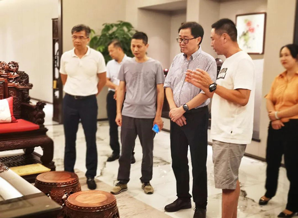 蒞臨廣東非遺(大涌紅木家具傳統雕刻技藝)傳承基地——紅古軒視察工作,