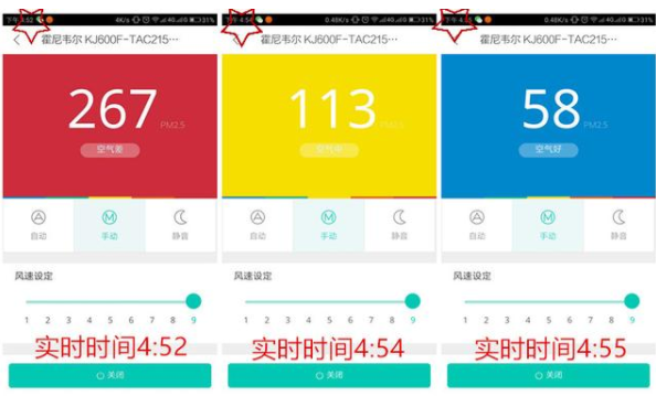 霍尼韋爾AT--X3內置傳感器,對空氣質量的變化感知非常靈敏,并且能過頂部的環形燈帶變換三種不同的顏色來表示,漂亮、直觀而且快速。按機身上的“H”按鈕,即可實現手機與霍尼韋爾APP相連,實時監測和調節凈化的運行情況,比如:定時、睡眠和自動模式切換、風速調節、室內外PM2.5查看等,都可以通過手機APP來實現。非常方便。
