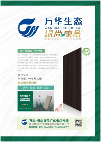 湘佳集團?福臨板材代理(廣東、云南兩省)的“萬華·綠尚康品”7×9尺大板,是國內首張無醛添加、超大尺寸飾面板,該板材以無醛“禾香板”為基材,使用MDI聚氨酯生態粘合劑,依托9英尺大幅面(雙層同步壓貼)德國溫康納貼面線,整合國內外高端鋼板與紙張供應鏈,隆重推出的高端定制家居飾面板。作為國潮大板的開拓者,“萬華·綠尚康品”將打破進口大板價格虛高的亂象,成為高品質、高性價比國產大板的典范!