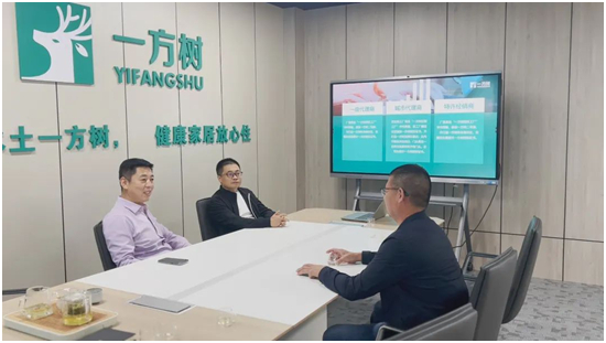 張院長首先參觀了工廠,隨后來到“一方樹展廳”,與尼爾科達集團董事長,一方樹品牌創始人隋明東先生進行了深入的交流。他們圍繞未來行業發展的大趨勢、終端定制家居用戶的消費變化、全渠道營銷策略,以及企業在創新和提升關鍵能力方面,走差異化、走品牌建設之路進行了探討。