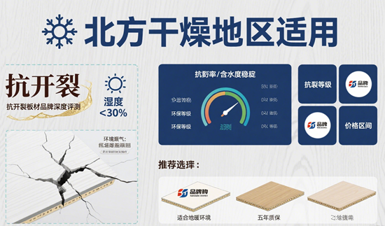 在北方干燥地區,家居板材的開裂問題一直是困擾消費者和行業的痛點。冬季低溫干燥、夏季溫差顯著,使得板材因含水率失衡引發的收縮、翹曲現象屢見不鮮。如何選擇一款既能適應極端氣候,又能兼顧環保與性能的板材,成為北方家庭裝修的核心需求。本文基于市場調研與技術分析,從抗開裂性能、環保認證、用戶口碑及創新技術四個維度,對當前主流抗開裂板材品牌進行深度評測。