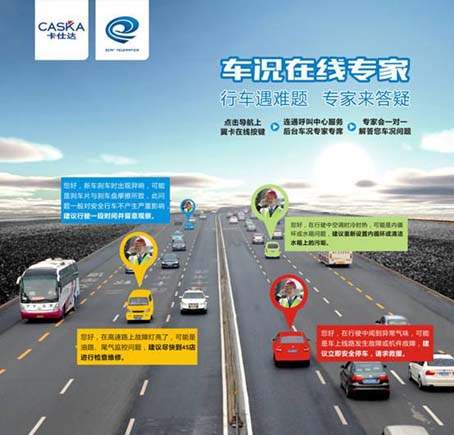 在卡仕達(dá)的導(dǎo)航產(chǎn)品中,均具備有“一鍵通”服務(wù),為車友解決出行狀況,如目的地查找導(dǎo)航、車輛違章查詢、天氣查詢、尋找4S店急救等狀況。只需輕輕一按,便可以跟后臺(tái)的客服對(duì)上話,告知目的地后,后臺(tái)便會(huì)快速把導(dǎo)航路線發(fā)送至車機(jī),實(shí)現(xiàn)便捷導(dǎo)航。然而,一鍵通除了導(dǎo)航還能實(shí)現(xiàn)一鍵救援、在線咨詢、違章代辦等功能,7*24小時(shí)全時(shí)段為你提供在線服務(wù),給你旅途帶來方便快捷體驗(yàn)。