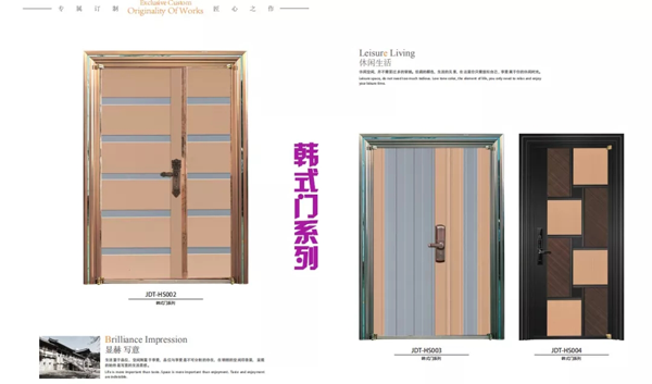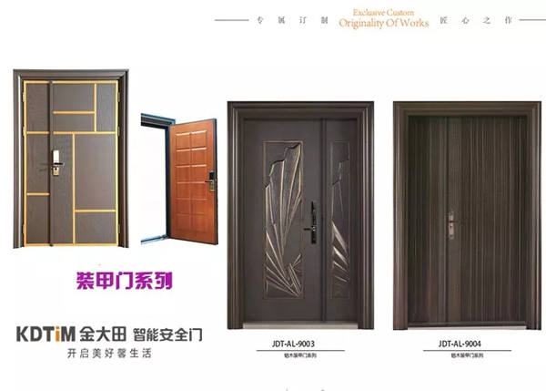 金大田智能安全門,由金大田精選各種高檔不銹鋼、銅質、鋁質、木質等多種新型生態環保原材; 創意設計古典奢華、典雅風尚、經典歐式、經典美式、現代歐式、現代美式、時尚新貴、都市魅力等上千種原創風格,雕花效果精美逼真,產品花樣造型豐富。在產品的風水尺、結構性、安全性、智能性方面,通過改進技術,綜合運用數據通信、網絡設備等技術,成功研發出超越傳統智能門的智能安全門,將自主研發的智能物聯模塊和門完美融合,實現真正意義上門的智能化,全面開啟智能家居生活。