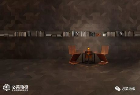 Tricot拼花地板在2019米蘭展中震撼面世,其面層為4mm厚的煙熏橡木板材,意大利工匠純手工打造出繁復穿梭的編織圖案,表面塑造出老化做舊的效果。Tricot拼花不僅能作為地板,還能上墻,打造出包圍式的裝飾鋪裝效果。