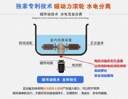 【主要性能】泰昌TC-5179全自動按摩足浴盆帶有防感應電技術,利用磁動力自動滾輪轉動,帶動按摩滾輪轉動,避免從盆內部安裝滾輪,有效做到水電分離,確保使用安全。產品使用超靜音水泵,模擬沖浪方式,確保太長足浴盆工作聲音只有40-50分貝。另外,桶內深度可達29CM±1CM,高桶泡腳更舒適,更衛生。
